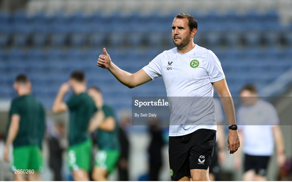 16 October 2023; Republic of Ireland coach John O'Shea before the UEFA EURO 2024 Championship qualifying group B match between Gibraltar and Republic of Ireland at Estádio Algarve in Faro, Portugal. Photo by Seb Daly/Sportsfile