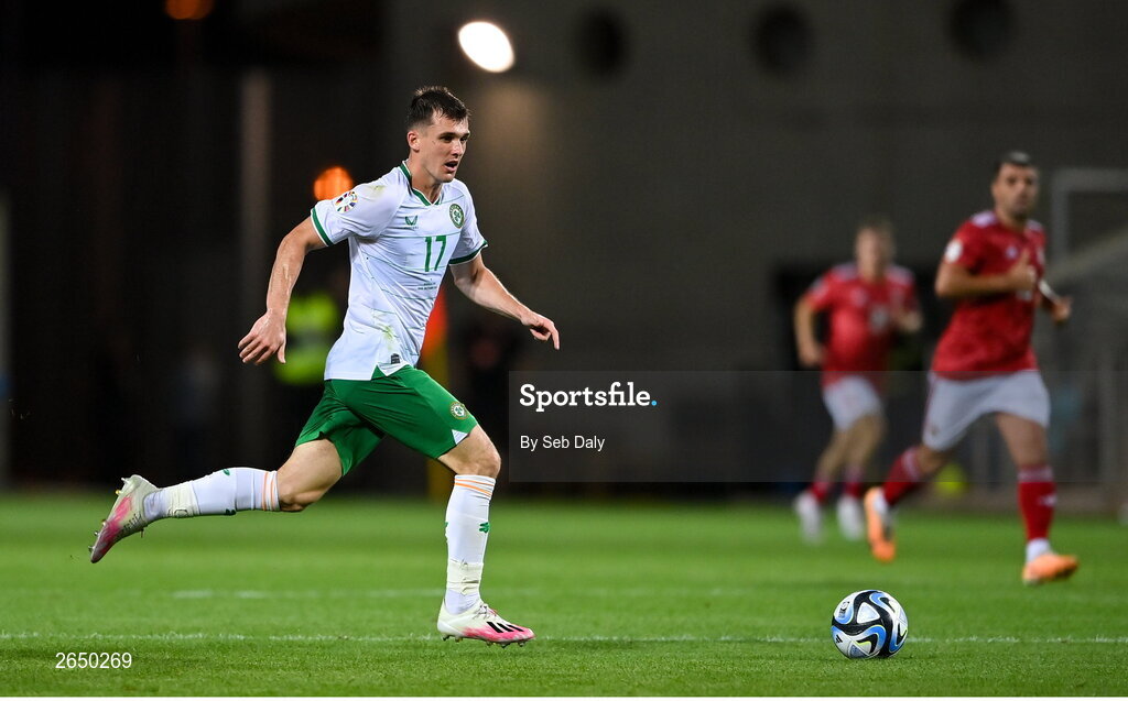 16 October 2023; Jason Knight of Republic of Ireland during the UEFA EURO 2024 Championship qualifying group B match between Gibraltar and Republic of Ireland at Estádio Algarve in Faro, Portugal. Photo by Seb Daly/Sportsfile