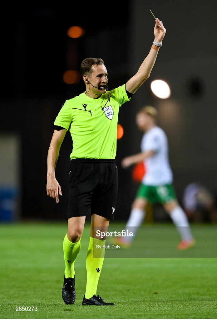 16 October 2023; Referee Christian-Petru Ciochirca during the UEFA EURO 2024 Championship qualifying group B match between Gibraltar and Republic of Ireland at Estádio Algarve in Faro, Portugal. Photo by Seb Daly/Sportsfile