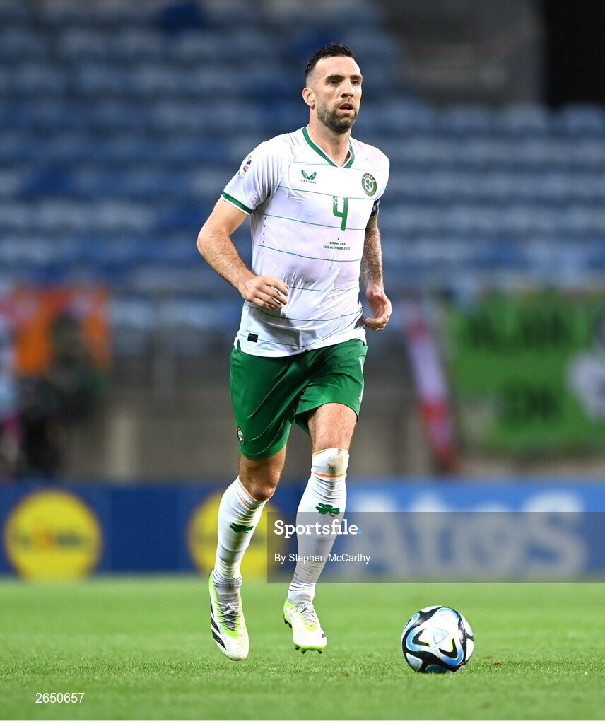 16 October 2023; Shane Duffy of Republic of Ireland during the UEFA EURO 2024 Championship qualifying group B match between Gibraltar and Republic of Ireland at Estádio Algarve in Faro, Portugal. Photo by Stephen McCarthy/Sportsfile
