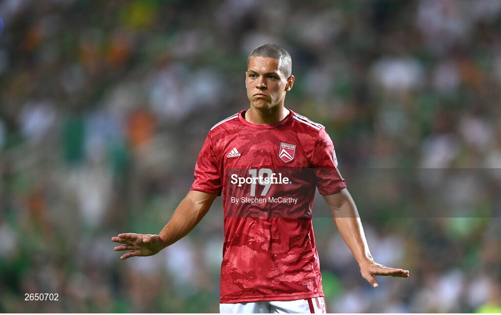 16 October 2023; Tjay De Barr of Gibraltar during the UEFA EURO 2024 Championship qualifying group B match between Gibraltar and Republic of Ireland at Estádio Algarve in Faro, Portugal. Photo by Stephen McCarthy/Sportsfile