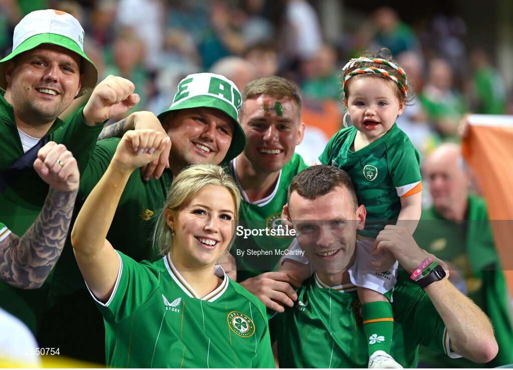 16 October 2023; Republic of Ireland supporters before the UEFA EURO 2024 Championship qualifying group B match between Gibraltar and Republic of Ireland at Estádio Algarve in Faro, Portugal. Photo by Stephen McCarthy/Sportsfile