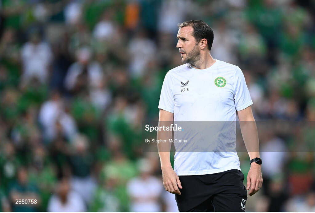 16 October 2023; Republic of Ireland coach John O'Shea before the UEFA EURO 2024 Championship qualifying group B match between Gibraltar and Republic of Ireland at Estádio Algarve in Faro, Portugal. Photo by Stephen McCarthy/Sportsfile