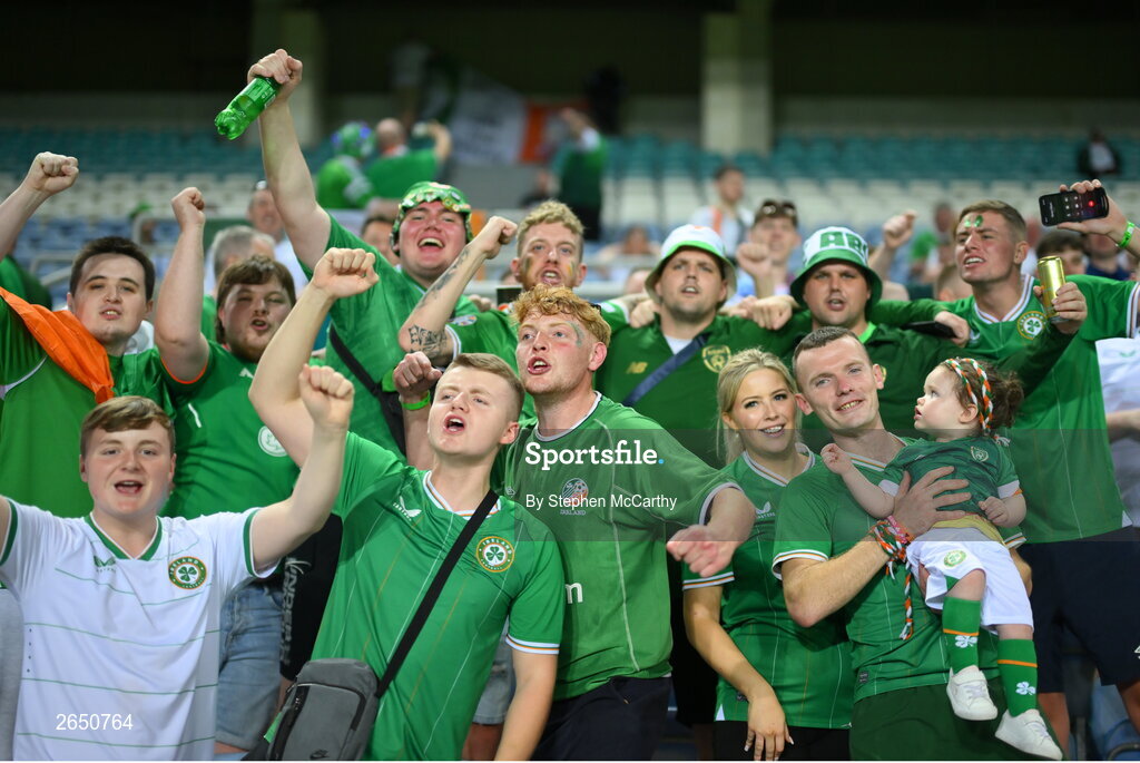 16 October 2023; Republic of Ireland supporters before the UEFA EURO 2024 Championship qualifying group B match between Gibraltar and Republic of Ireland at Estádio Algarve in Faro, Portugal. Photo by Stephen McCarthy/Sportsfile
