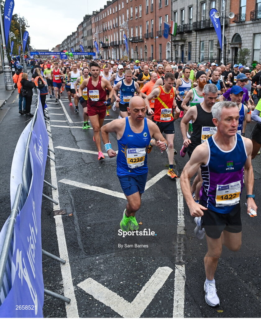 29 October 2023; Participants during the 2023 Irish Life Dublin Marathon. Thousands of runners took to the Fitzwilliam Square start line, to participate in the 42nd running of the Dublin Marathon. Photo by Sam Barnes/Sportsfile