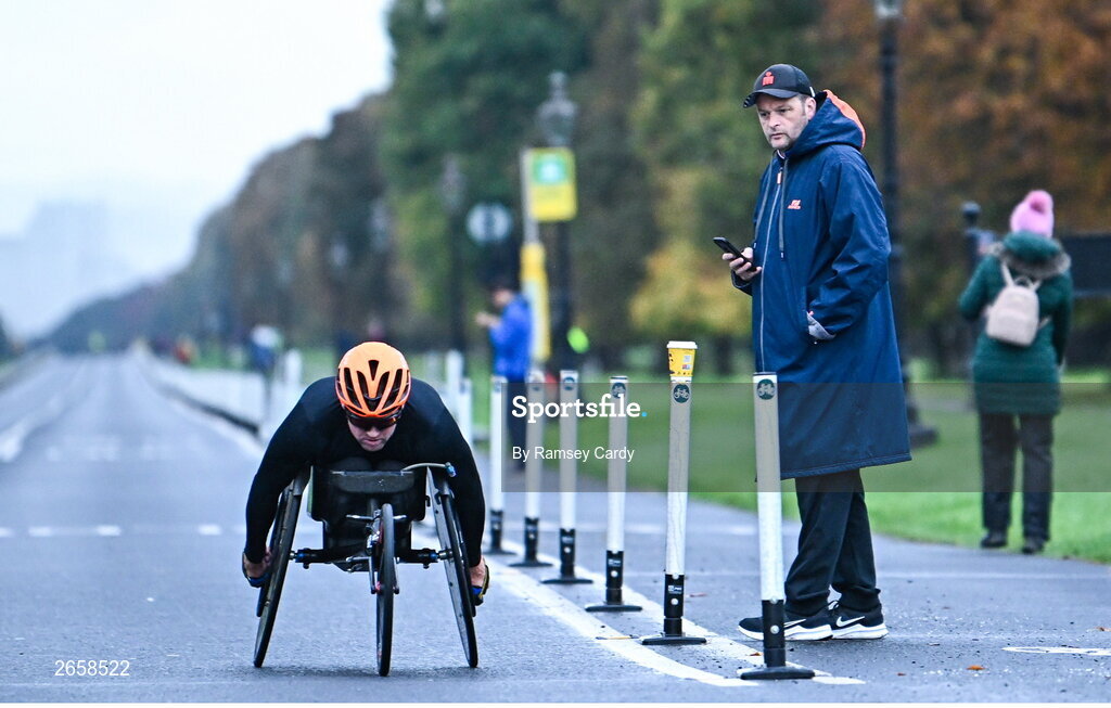 29 October 2023; Patrick Monahan from Kildare passes through the Phoenix Park during the 2023 Irish Life Dublin Marathon. Thousands of runners took to the Fitzwilliam Square start line, to participate in the 42nd running of the Dublin Marathon. Photo by Ramsey Cardy/Sportsfile