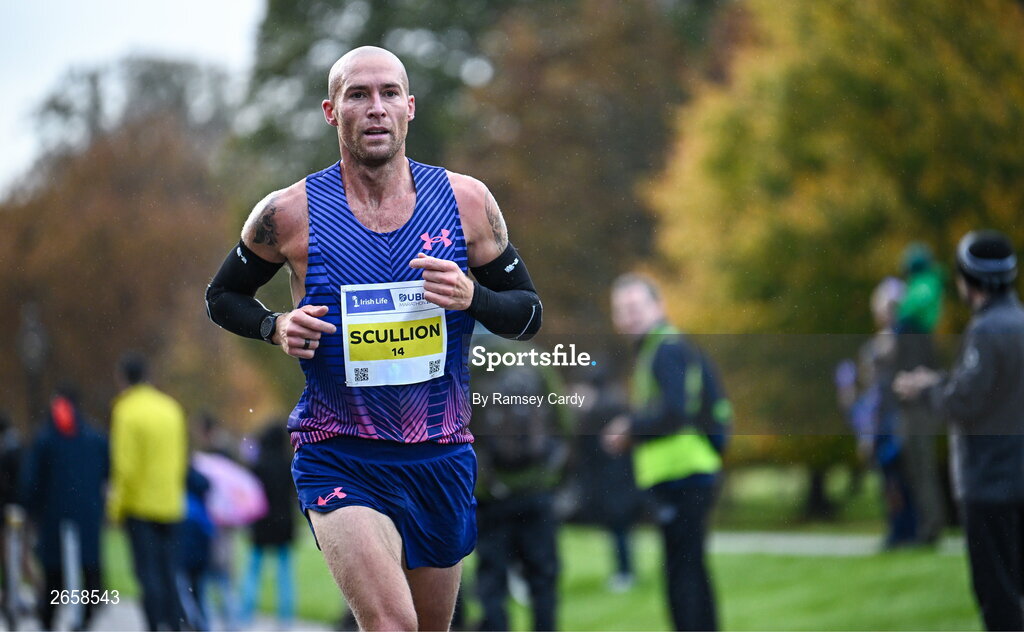 29 October 2023; Stephen Scullion from Belfast makes his way through the Phoenix Park during the 2023 Irish Life Dublin Marathon. Thousands of runners took to the Fitzwilliam Square start line, to participate in the 42nd running of the Dublin Marathon. Photo by Ramsey Cardy/Sportsfile