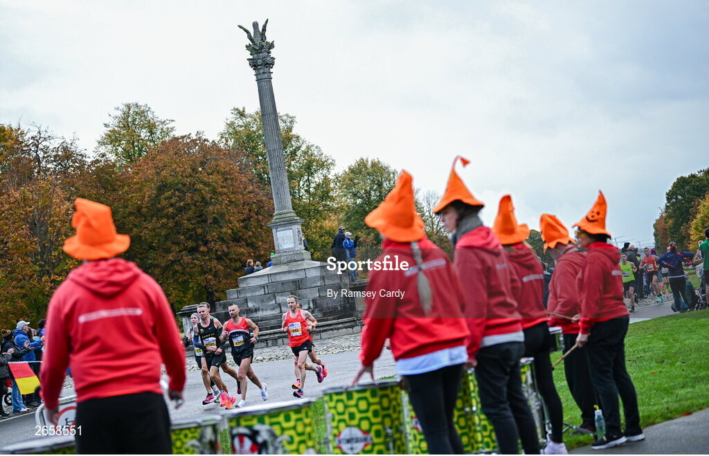 29 October 2023; Runners pass Mas Samba in the Phoenix Park during the 2023 Irish Life Dublin Marathon. Thousands of runners took to the Fitzwilliam Square start line, to participate in the 42nd running of the Dublin Marathon. Photo by Ramsey Cardy/Sportsfile