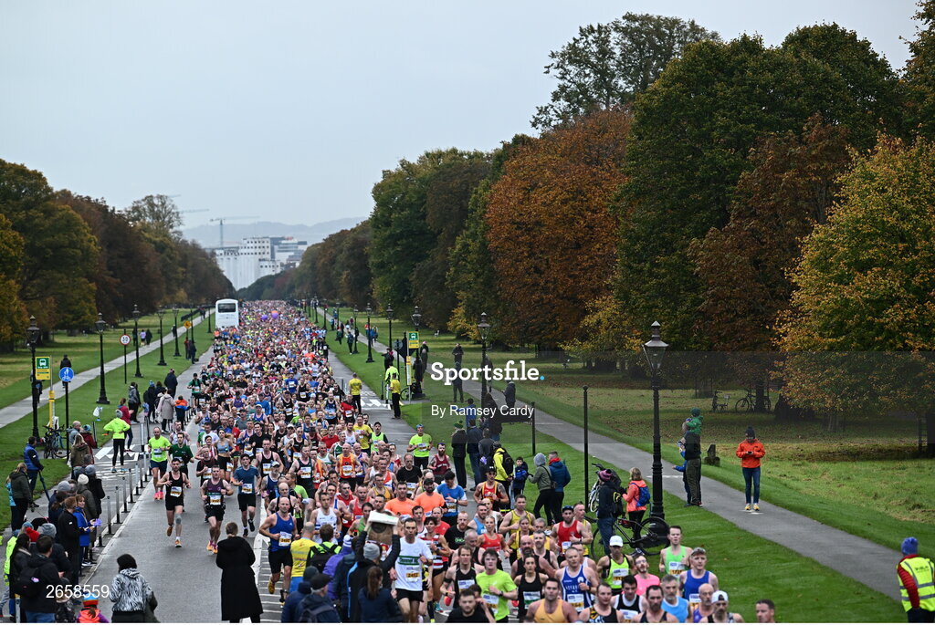 29 October 2023; Runners pass through the Phoenix Park during the 2023 Irish Life Dublin Marathon. Thousands of runners took to the Fitzwilliam Square start line, to participate in the 42nd running of the Dublin Marathon. Photo by Ramsey Cardy/Sportsfile