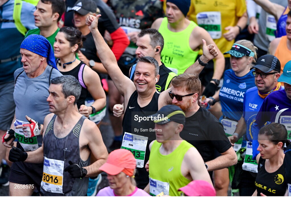 29 October 2023; Kevin Bulger from Dublin, centre, during the 2023 Irish Life Dublin Marathon. Thousands of runners took to the Fitzwilliam Square start line, to participate in the 42nd running of the Dublin Marathon. Photo by Sam Barnes/Sportsfile