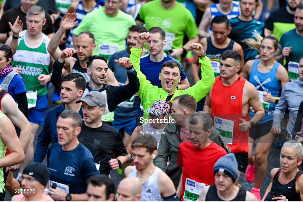 29 October 2023; Participants during the 2023 Irish Life Dublin Marathon. Thousands of runners took to the Fitzwilliam Square start line, to participate in the 42nd running of the Dublin Marathon. Photo by Sam Barnes/Sportsfile