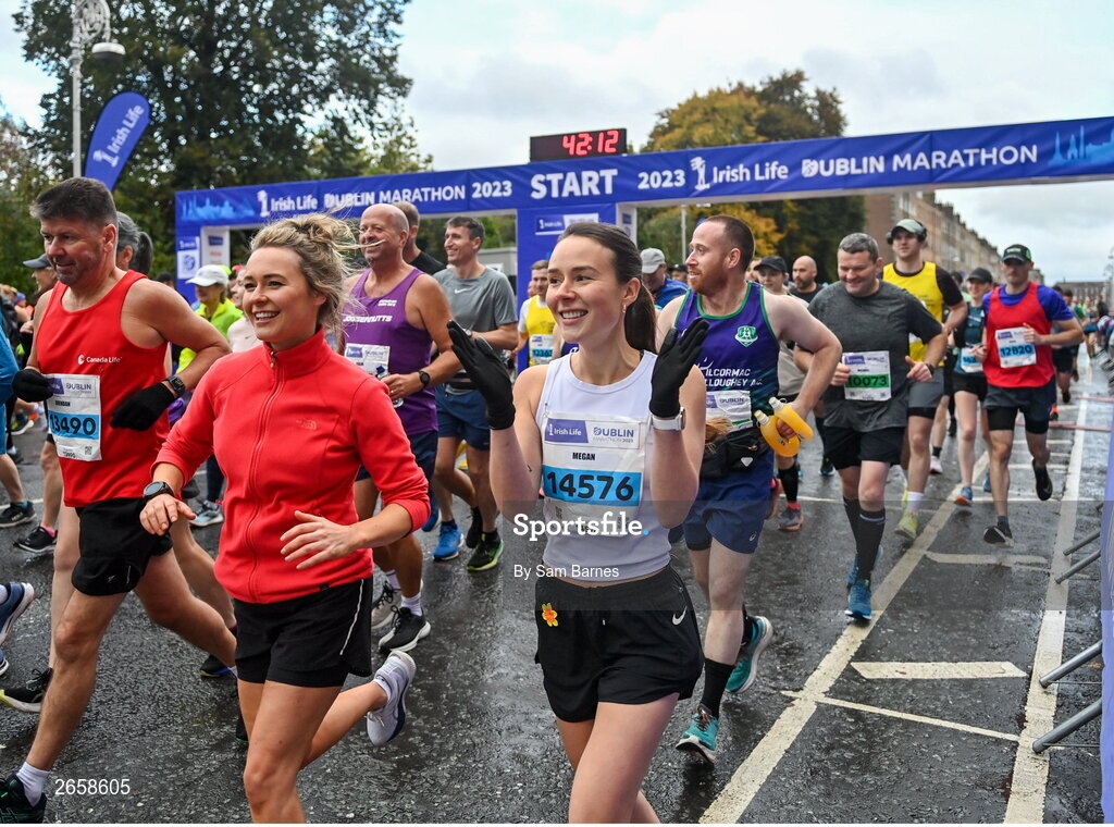 29 October 2023; Megan O' Driscoll from Kildare during the 2023 Irish Life Dublin Marathon. Thousands of runners took to the Fitzwilliam Square start line, to participate in the 42nd running of the Dublin Marathon. Photo by Sam Barnes/Sportsfile