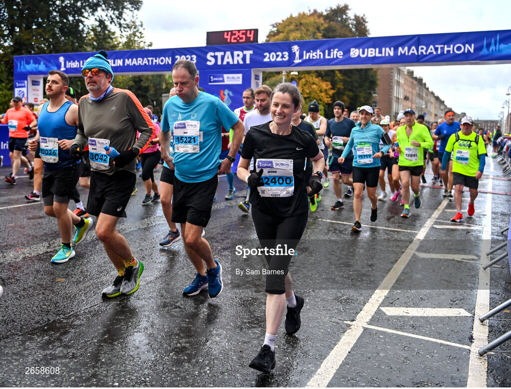 29 October 2023; Deirdre Brennan from Dublin 7 during the 2023 Irish Life Dublin Marathon. Thousands of runners took to the Fitzwilliam Square start line, to participate in the 42nd running of the Dublin Marathon. Photo by Sam Barnes/Sportsfile
