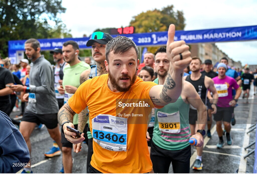 29 October 2023; Cormac Kelly from Cavan during the 2023 Irish Life Dublin Marathon. Thousands of runners took to the Fitzwilliam Square start line, to participate in the 42nd running of the Dublin Marathon. Photo by Sam Barnes/Sportsfile