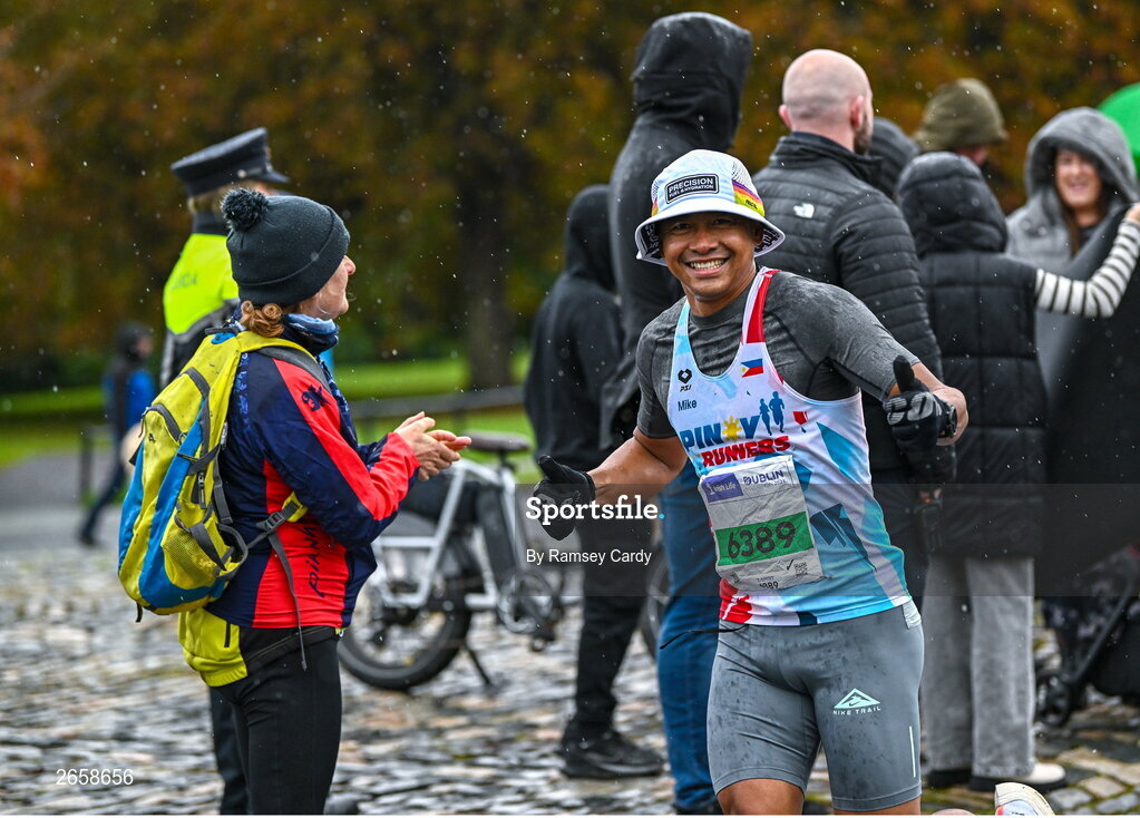 29 October 2023; Al Tinoy from Dublin during the 2023 Irish Life Dublin Marathon. Thousands of runners took to the Fitzwilliam Square start line, to participate in the 42nd running of the Dublin Marathon. Photo by Ramsey Cardy/Sportsfile
