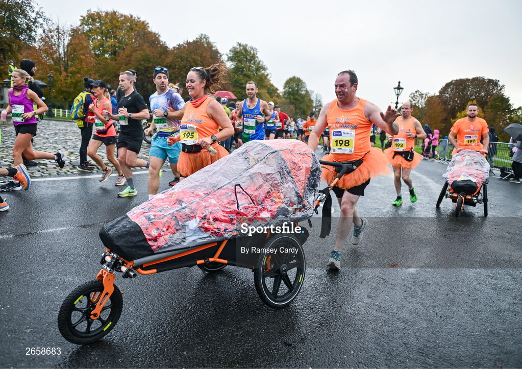 29 October 2023; Team Archie during the 2023 Irish Life Dublin Marathon. Thousands of runners took to the Fitzwilliam Square start line, to participate in the 42nd running of the Dublin Marathon. Photo by Ramsey Cardy/Sportsfile