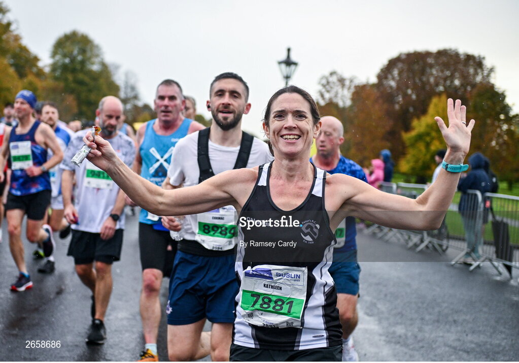 29 October 2023; Kathleen Diver from Armagh during the 2023 Irish Life Dublin Marathon. Thousands of runners took to the Fitzwilliam Square start line, to participate in the 42nd running of the Dublin Marathon. Photo by Ramsey Cardy/Sportsfile