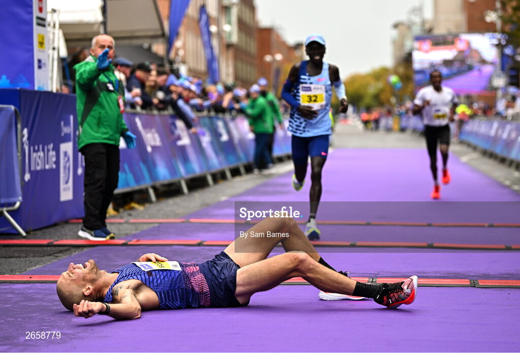 29 October 2023; Irish National Champion Stephen Scullion after he finished third in the men's event during the 2023 Irish Life Dublin Marathon. Thousands of runners took to the Fitzwilliam Square start line, to participate in the 42nd running of the Dublin Marathon. Photo by Sam Barnes/Sportsfile