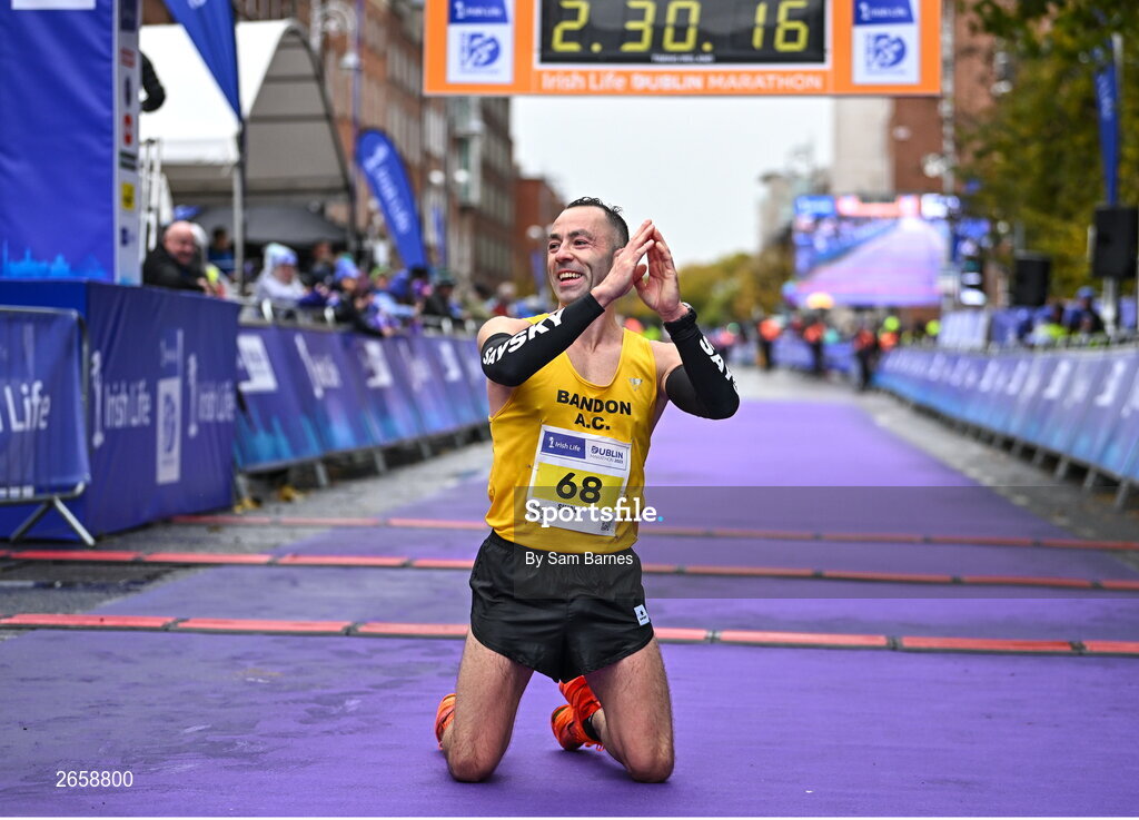 29 October 2023; Simon Nolan from Cork after the 2023 Irish Life Dublin Marathon. Thousands of runners took to the Fitzwilliam Square start line, to participate in the 42nd running of the Dublin Marathon. Photo by Sam Barnes/Sportsfile