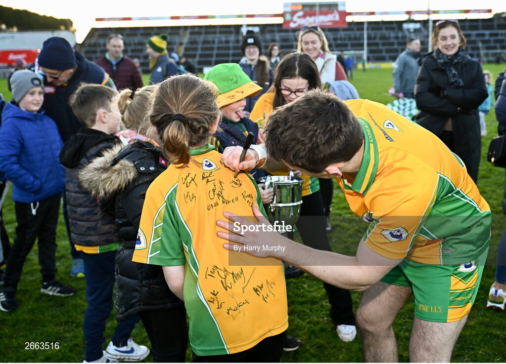 5 November 2023; Gavin Burke of Corofin signs a jersey after his side's victory in the Galway County Senior Club Football Championship final match between Corofin and Moycullen at Pearse Stadium in Galway. Photo by Harry Murphy/Sportsfile