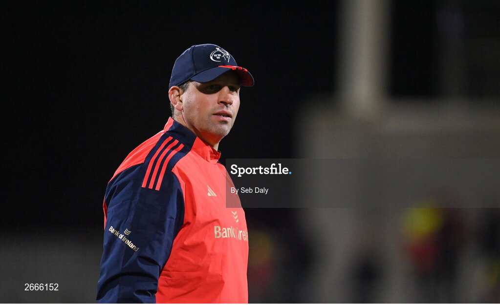 10 November 2023; Munster defence coach Denis Leamy before the United Rugby Championship match between Ulster and Munster at Kingspan Stadium in Belfast. Photo by Seb Daly/Sportsfile