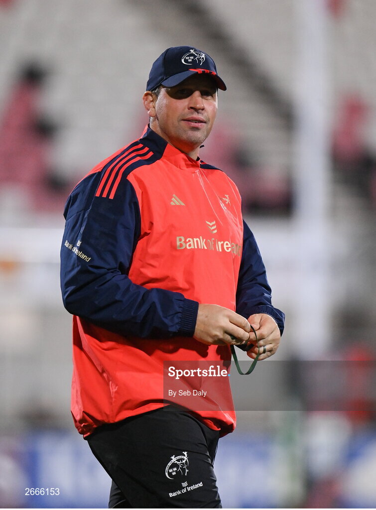 10 November 2023; Munster defence coach Denis Leamy before the United Rugby Championship match between Ulster and Munster at Kingspan Stadium in Belfast. Photo by Seb Daly/Sportsfile