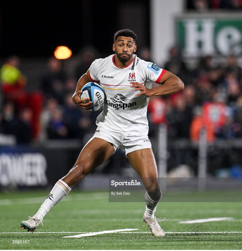 10 November 2023; Rob Baloucoune of Ulster during the United Rugby Championship match between Ulster and Munster at Kingspan Stadium in Belfast. Photo by Seb Daly/Sportsfile
