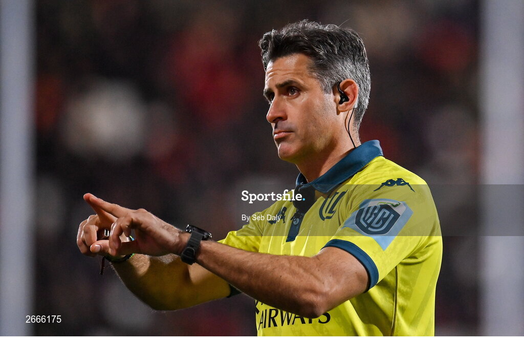 10 November 2023; Referee Frank Murphy during the United Rugby Championship match between Ulster and Munster at Kingspan Stadium in Belfast. Photo by Seb Daly/Sportsfile