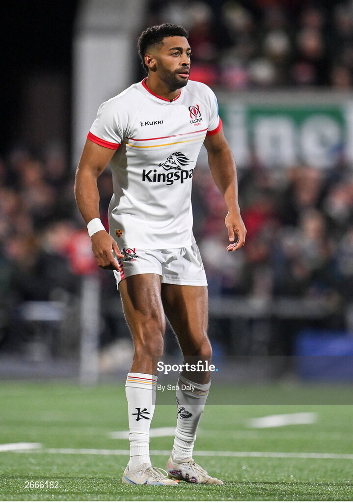10 November 2023; Rob Baloucoune of Ulster during the United Rugby Championship match between Ulster and Munster at Kingspan Stadium in Belfast. Photo by Seb Daly/Sportsfile
