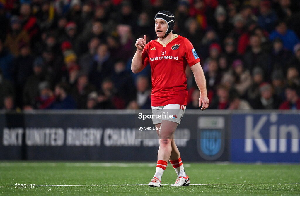 10 November 2023; Rory Scannell of Munster during the United Rugby Championship match between Ulster and Munster at Kingspan Stadium in Belfast. Photo by Seb Daly/Sportsfile