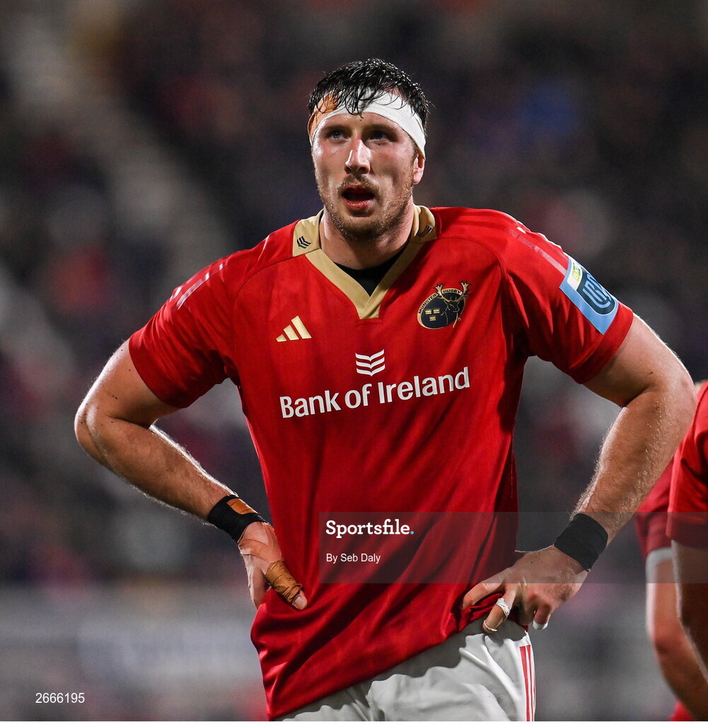 10 November 2023; Tom Ahern of Munster during the United Rugby Championship match between Ulster and Munster at Kingspan Stadium in Belfast. Photo by Seb Daly/Sportsfile