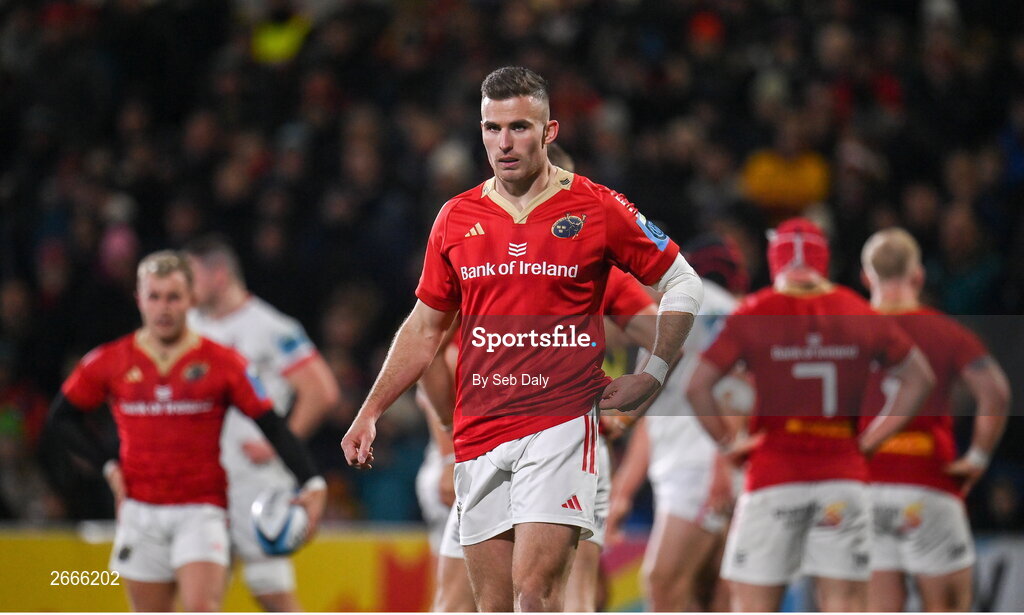 10 November 2023; Shane Daly of Munster during the United Rugby Championship match between Ulster and Munster at Kingspan Stadium in Belfast. Photo by Seb Daly/Sportsfile