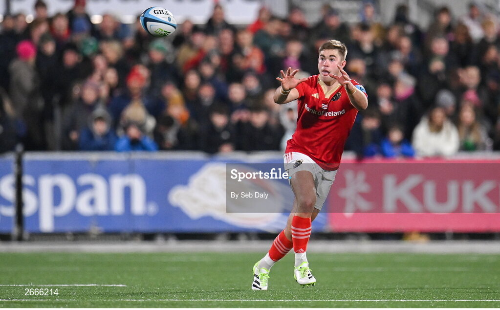 10 November 2023; Jack Crowley of Munster during the United Rugby Championship match between Ulster and Munster at Kingspan Stadium in Belfast. Photo by Seb Daly/Sportsfile