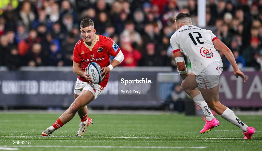10 November 2023; Shane Daly of Munster during the United Rugby Championship match between Ulster and Munster at Kingspan Stadium in Belfast. Photo by Seb Daly/Sportsfile