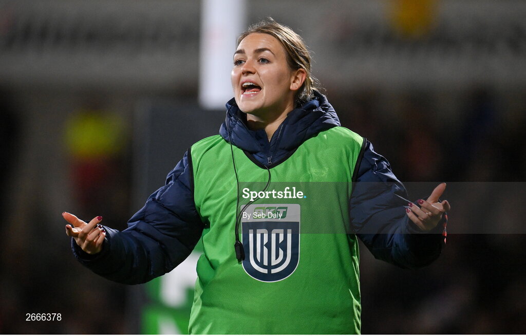 10 November 2023; Munster Rugby sport scientist Beth Smith during the United Rugby Championship match between Ulster and Munster at Kingspan Stadium in Belfast. Photo by Seb Daly/Sportsfile