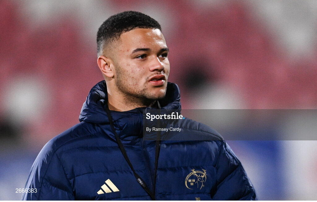 10 November 2023; Shay McCarthy of Munster before the United Rugby Championship match between Ulster and Munster at Kingspan Stadium in Belfast. Photo by Ramsey Cardy/Sportsfile