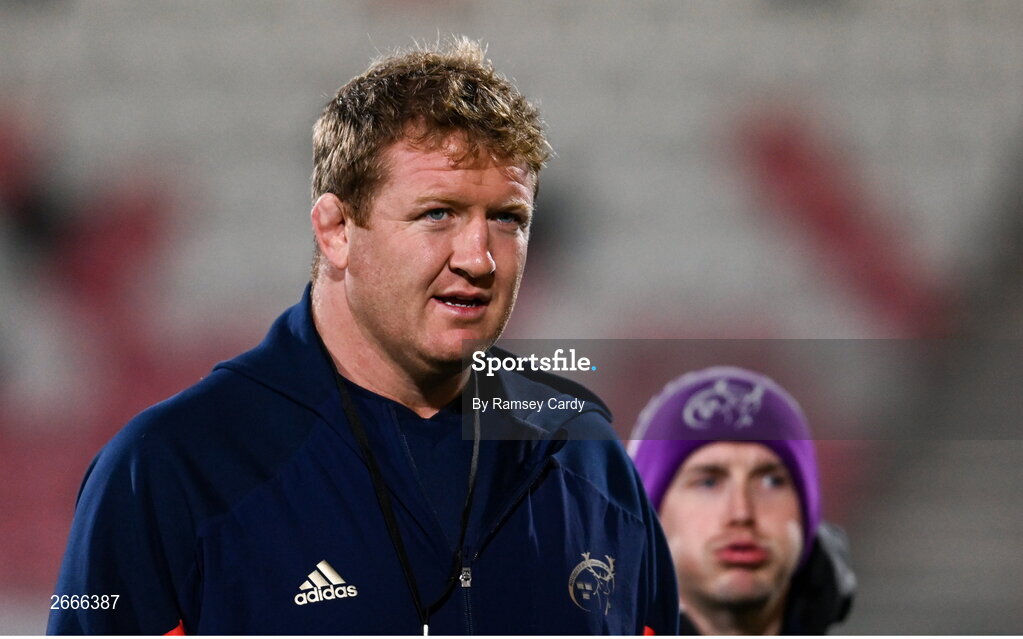 10 November 2023; Stephen Archer of Munster before the United Rugby Championship match between Ulster and Munster at Kingspan Stadium in Belfast. Photo by Ramsey Cardy/Sportsfile