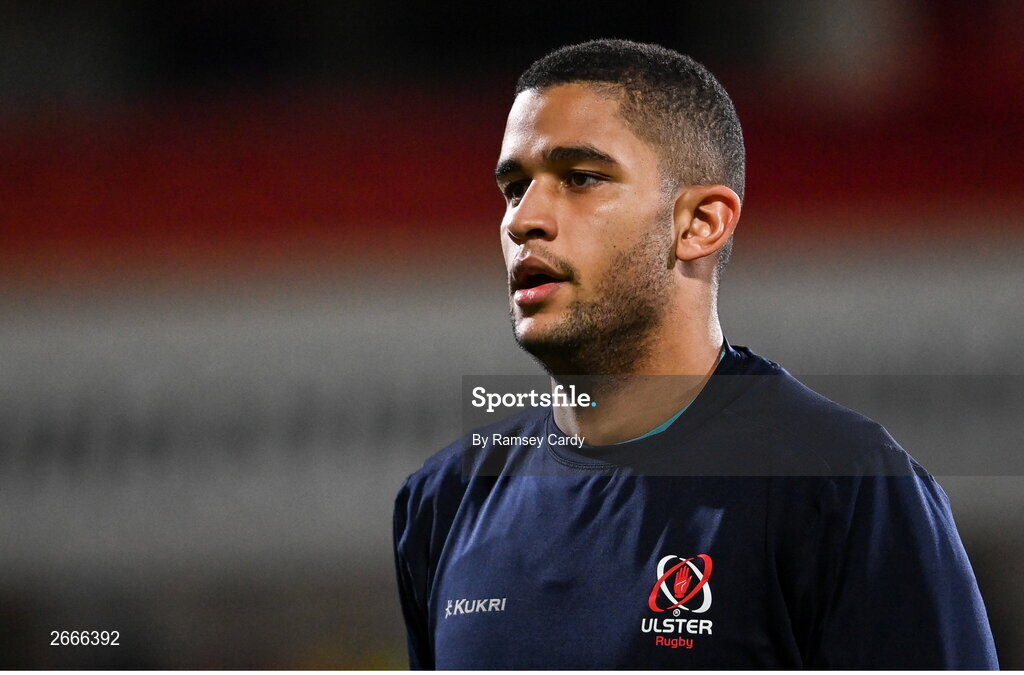 10 November 2023; Cormac Izuchukwu of Ulster before the United Rugby Championship match between Ulster and Munster at Kingspan Stadium in Belfast. Photo by Ramsey Cardy/Sportsfile