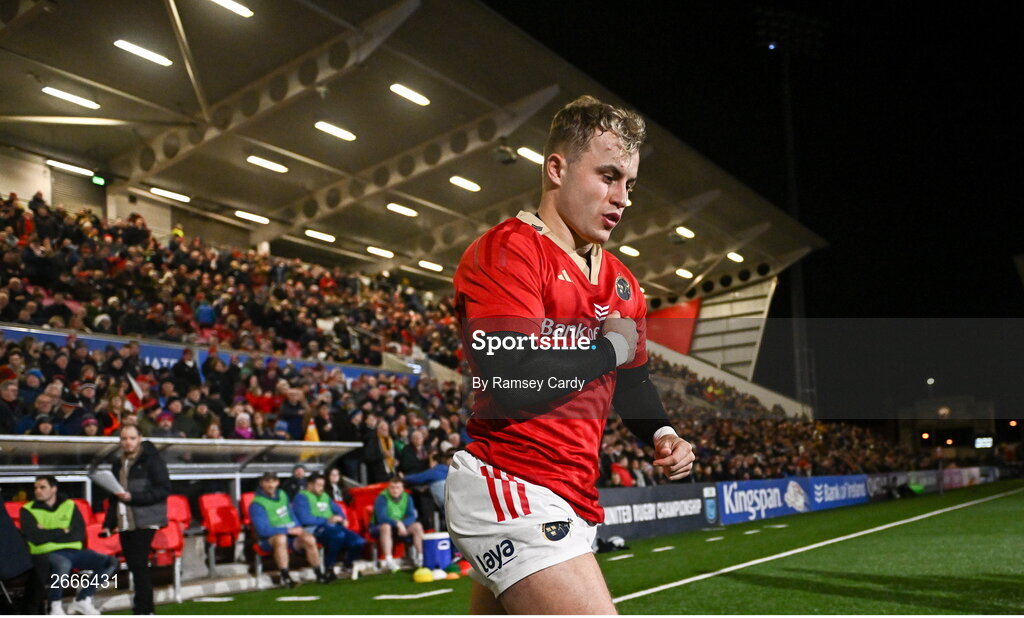 10 November 2023; Craig Casey of Munster before the United Rugby Championship match between Ulster and Munster at Kingspan Stadium in Belfast. Photo by Ramsey Cardy/Sportsfile