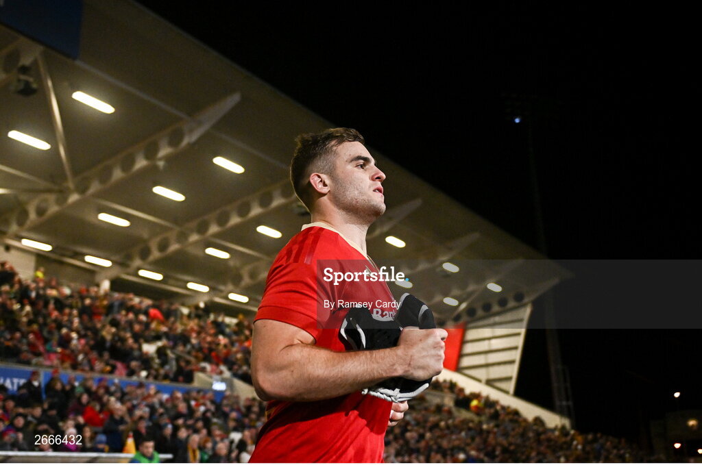 10 November 2023; Alex Kendellen of Munster before the United Rugby Championship match between Ulster and Munster at Kingspan Stadium in Belfast. Photo by Ramsey Cardy/Sportsfile