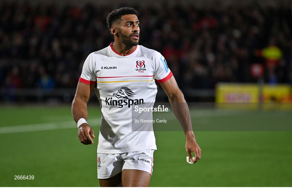 10 November 2023; Robert Baloucoune of Ulster during the United Rugby Championship match between Ulster and Munster at Kingspan Stadium in Belfast. Photo by Ramsey Cardy/Sportsfile