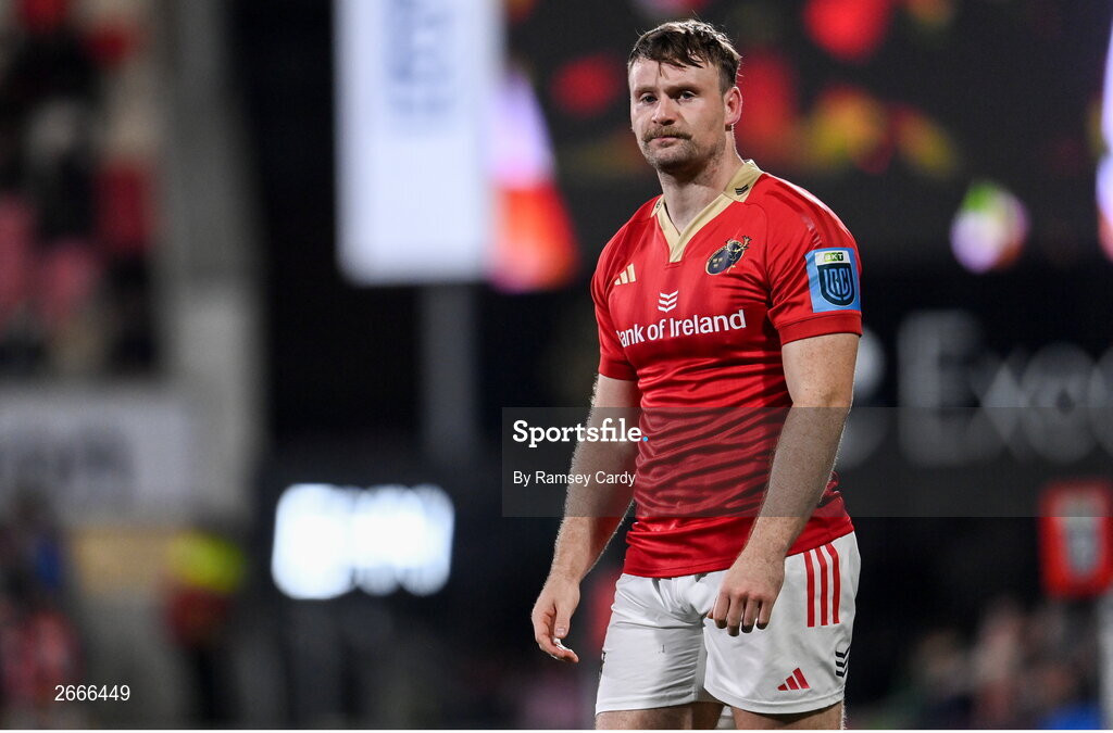 10 November 2023; Seán O’Brien of Munster during the United Rugby Championship match between Ulster and Munster at Kingspan Stadium in Belfast. Photo by Ramsey Cardy/Sportsfile