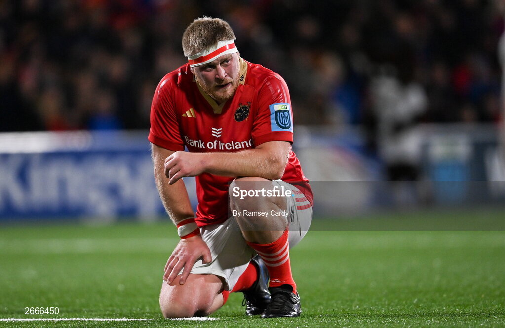 10 November 2023; John Ryan of Munster during the United Rugby Championship match between Ulster and Munster at Kingspan Stadium in Belfast. Photo by Ramsey Cardy/Sportsfile