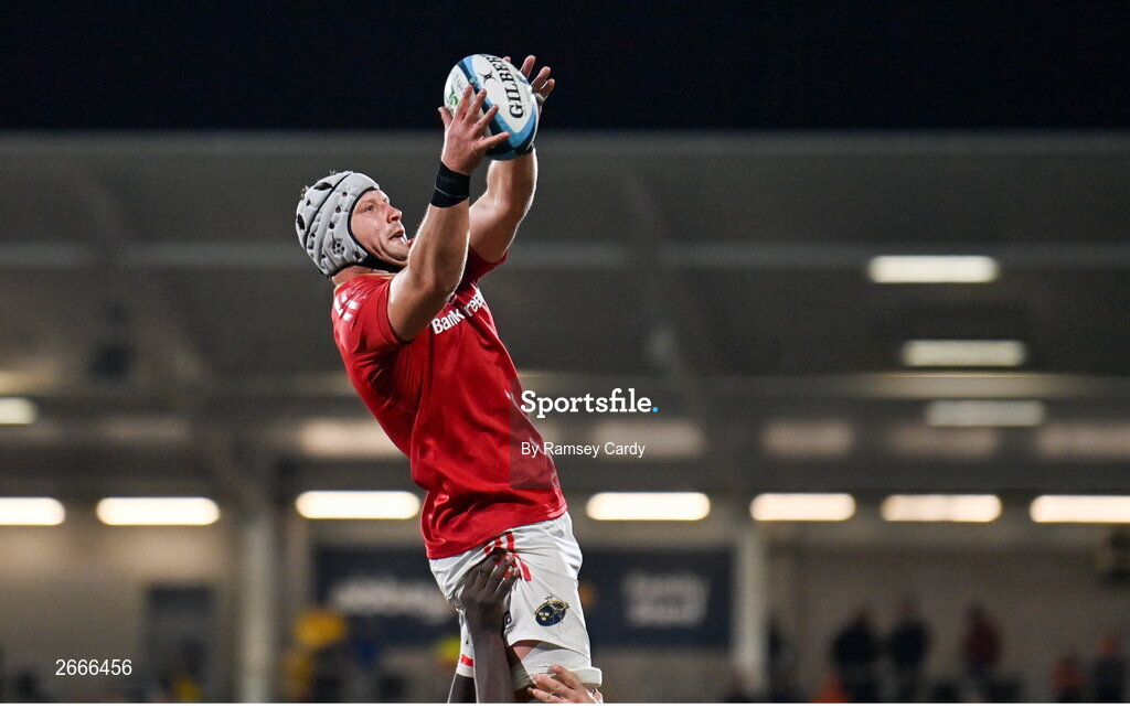 10 November 2023; Fineen Wycherley of Munster during the United Rugby Championship match between Ulster and Munster at Kingspan Stadium in Belfast. Photo by Ramsey Cardy/Sportsfile