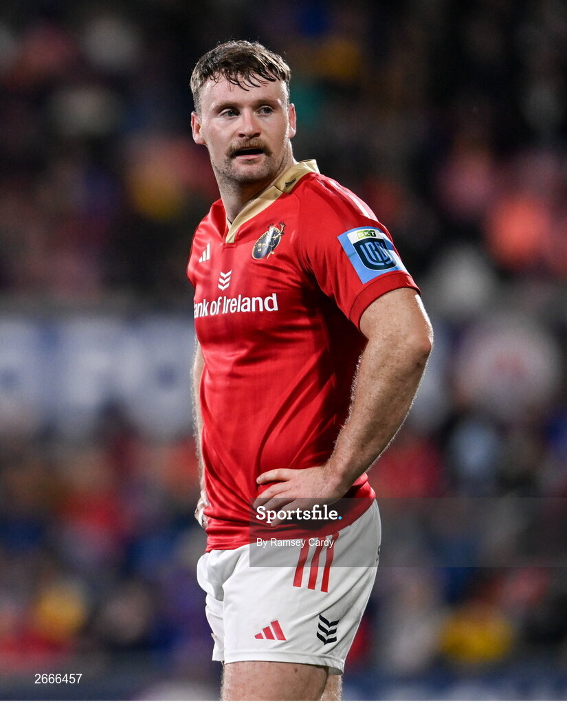 10 November 2023; Seán O’Brien of Munster during the United Rugby Championship match between Ulster and Munster at Kingspan Stadium in Belfast. Photo by Ramsey Cardy/Sportsfile