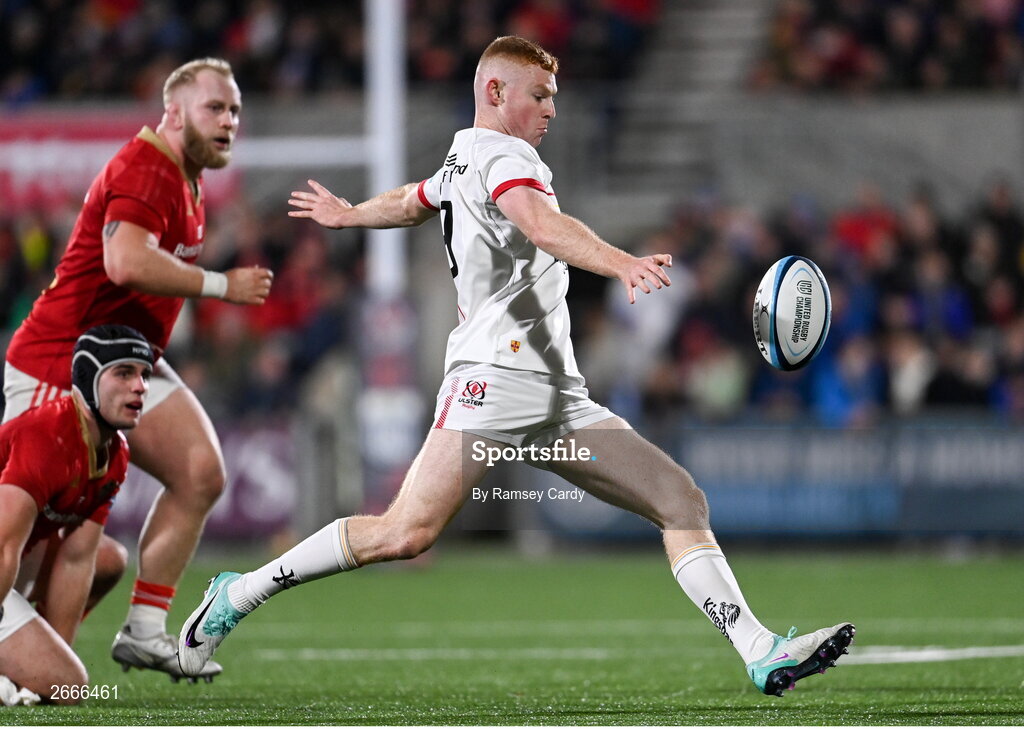 10 November 2023; Nathan Doak of Ulster during the United Rugby Championship match between Ulster and Munster at Kingspan Stadium in Belfast. Photo by Ramsey Cardy/Sportsfile