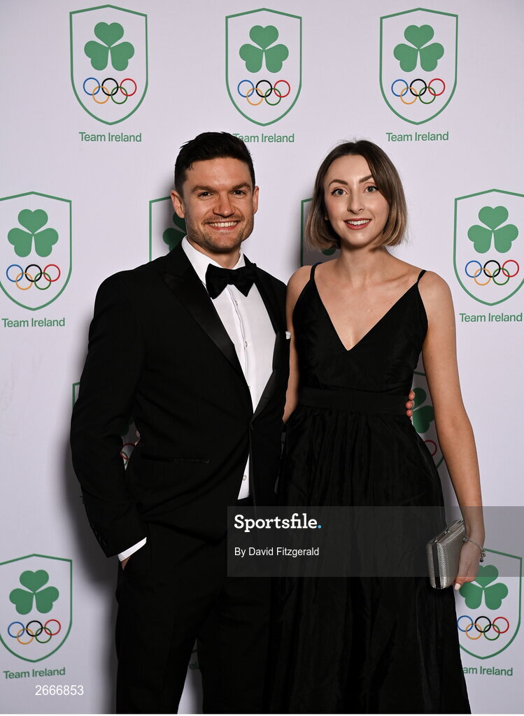 11 November 2023; Canoeist Samuel Curtis and Rianne Hannon in attendance at the Team Ireland Olympic Ball at the Mansion House in Dublin. The event was a joint celebration of the brilliant performances of Team Ireland athletes at the European Games this summer, as well as the announcement of the winners of the Olympic Federation of Ireland Annual Awards. The event was attended by the Minister for Tourism, Culture, Arts, Gaeltacht, Sport and Media, Catherine Martin TD, Minister of State for Sport and Physical Education, Thomas Byrne TD, Olympic medallists, European Games athletes, Team Ireland Sponsors and Partners, Sport Ireland and the wider Olympic family. Photo by David Fitzgerald/Sportsfile