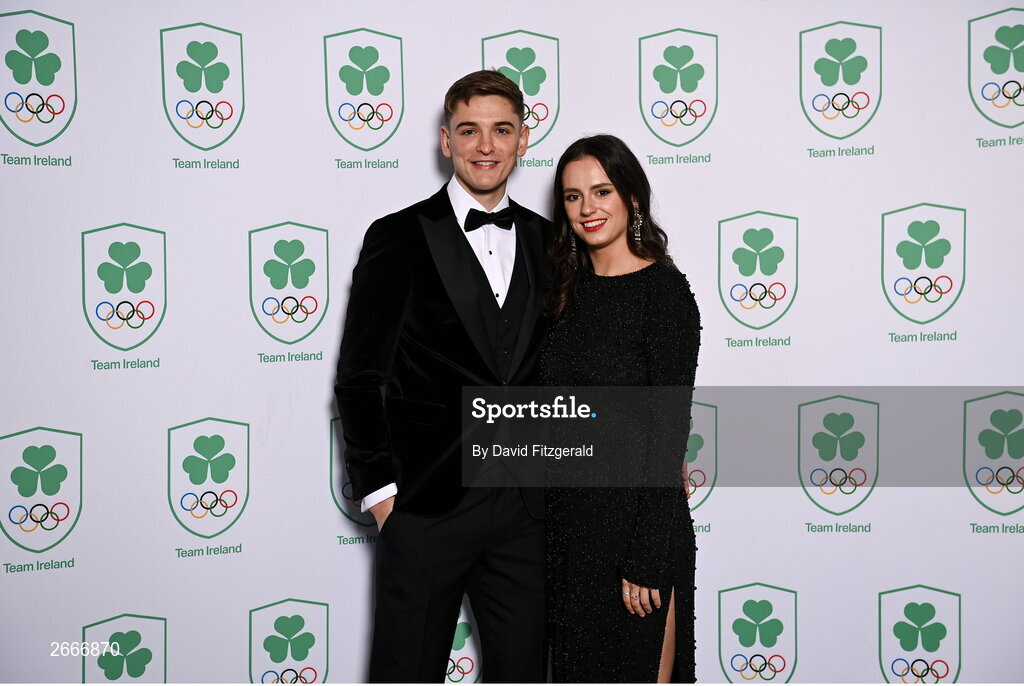 11 November 2023; Kickboxer Conor McGlinchey and Hollie Broderick in attendance at the Team Ireland Olympic Ball at the Mansion House in Dublin. The event was a joint celebration of the brilliant performances of Team Ireland athletes at the European Games this summer, as well as the announcement of the winners of the Olympic Federation of Ireland Annual Awards. The event was attended by the Minister for Tourism, Culture, Arts, Gaeltacht, Sport and Media, Catherine Martin TD, Minister of State for Sport and Physical Education, Thomas Byrne TD, Olympic medallists, European Games athletes, Team Ireland Sponsors and Partners, Sport Ireland and the wider Olympic family. Photo by David Fitzgerald/Sportsfile