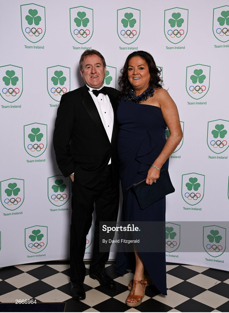 11 November 2023; PTSB chief executive Eamonn Crowley and Orlaith Crowley in attendance at the Team Ireland Olympic Ball at the Mansion House in Dublin. The event was a joint celebration of the brilliant performances of Team Ireland athletes at the European Games this summer, as well as the announcement of the winners of the Olympic Federation of Ireland Annual Awards. The event was attended by the Minister for Tourism, Culture, Arts, Gaeltacht, Sport and Media, Catherine Martin TD, Minister of State for Sport and Physical Education, Thomas Byrne TD, Olympic medallists, European Games athletes, Team Ireland Sponsors and Partners, Sport Ireland and the wider Olympic family. Photo by David Fitzgerald/Sportsfile