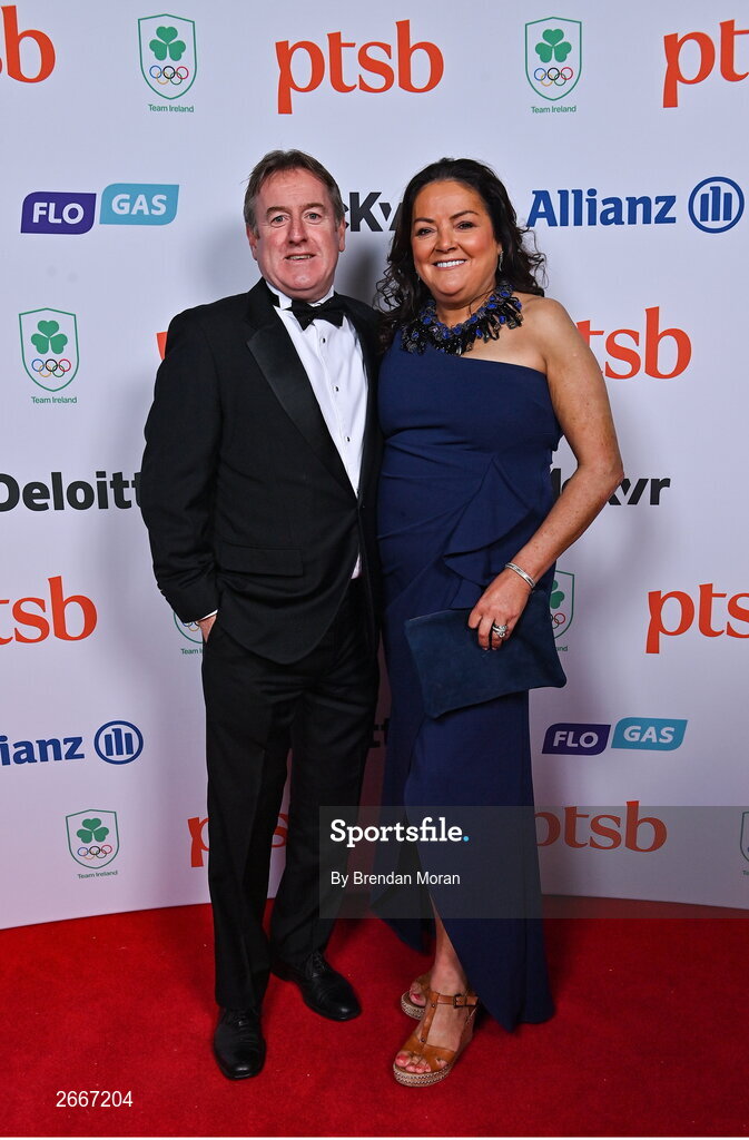 11 November 2023; PTSB chief executive Eamonn Crowley and Orlaith Crowley in attendance at the Team Ireland Olympic Ball at the Mansion House in Dublin. The event was a joint celebration of the brilliant performances of Team Ireland athletes at the European Games this summer, as well as the announcement of the winners of the Olympic Federation of Ireland Annual Awards. The event was attended by the Minister for Tourism, Culture, Arts, Gaeltacht, Sport and Media, Catherine Martin TD, Minister of State for Sport and Physical Education, Thomas Byrne TD, Olympic medallists, European Games athletes, Team Ireland Sponsors and Partners, Sport Ireland and the wider Olympic family. Photo by Brendan Moran/Sportsfile